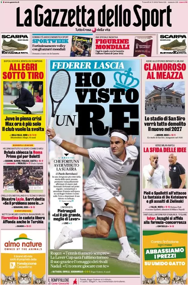 Ecco le prime pagine di Gazzetta dello Sport, Corriere dello Sport e Tuttosport in edicola oggi, venerdì 16 settembre.