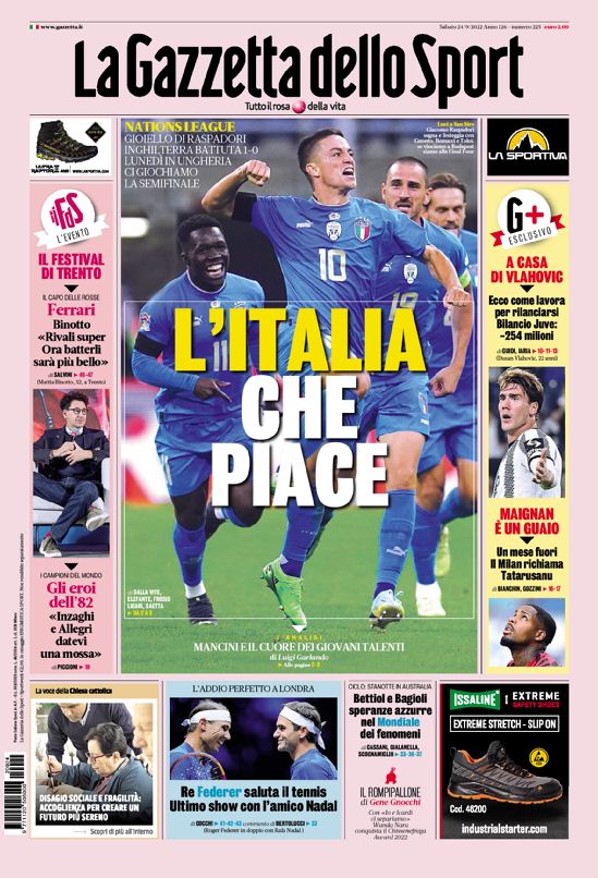 Le prime pagine dei principali quotidiani sportivi nazionali di oggi, sabato 24 settembre 2022