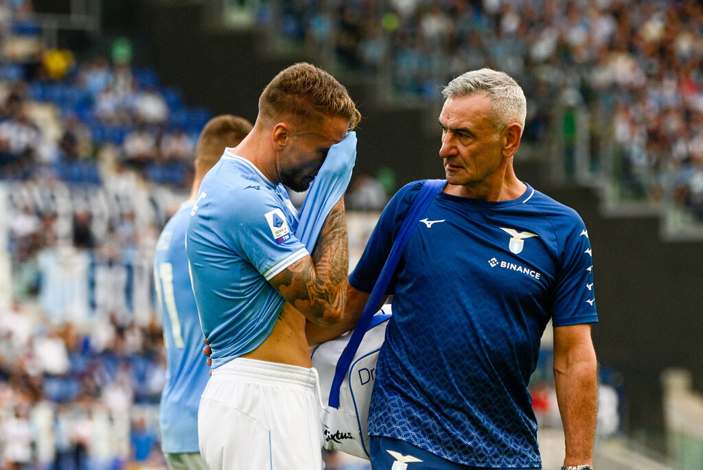 injury of Ciro Immobile (SS Lazio) during the Italian Football Championship League A 2022/2023 match between SS Lazio vs Udinese Calcio at the Olimpic Stadium in Rome on 16 October 2022.