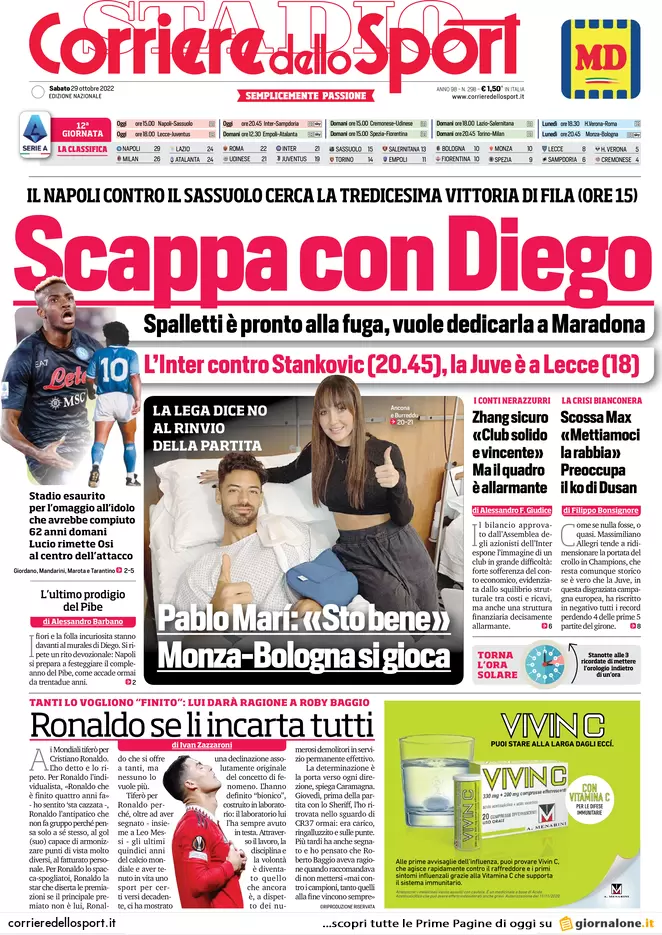 Le prime pagine dei principali quotidiani sportivi nazionali questa mattina in edicola