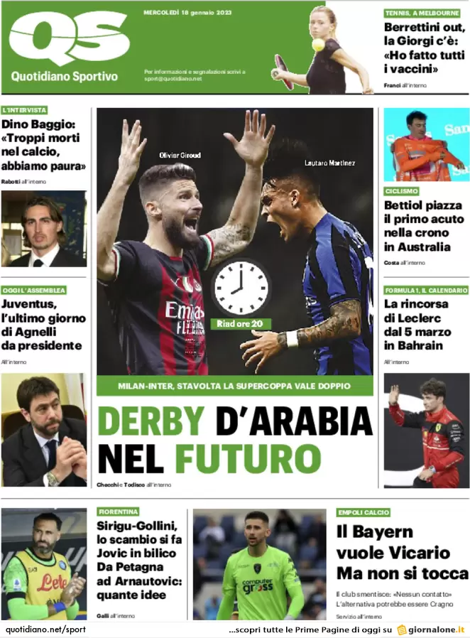 Le prime pagine dei principali quotidiani sportivi nazionali in edicola questa mattina