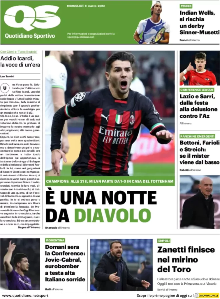 Le prime pagine dei principali quotidiani sportivi nazionali in edicola questa mattina