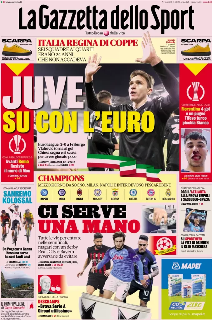 Le prime pagine dei principali quotidiani sportivi nazionali in edicola questa mattina