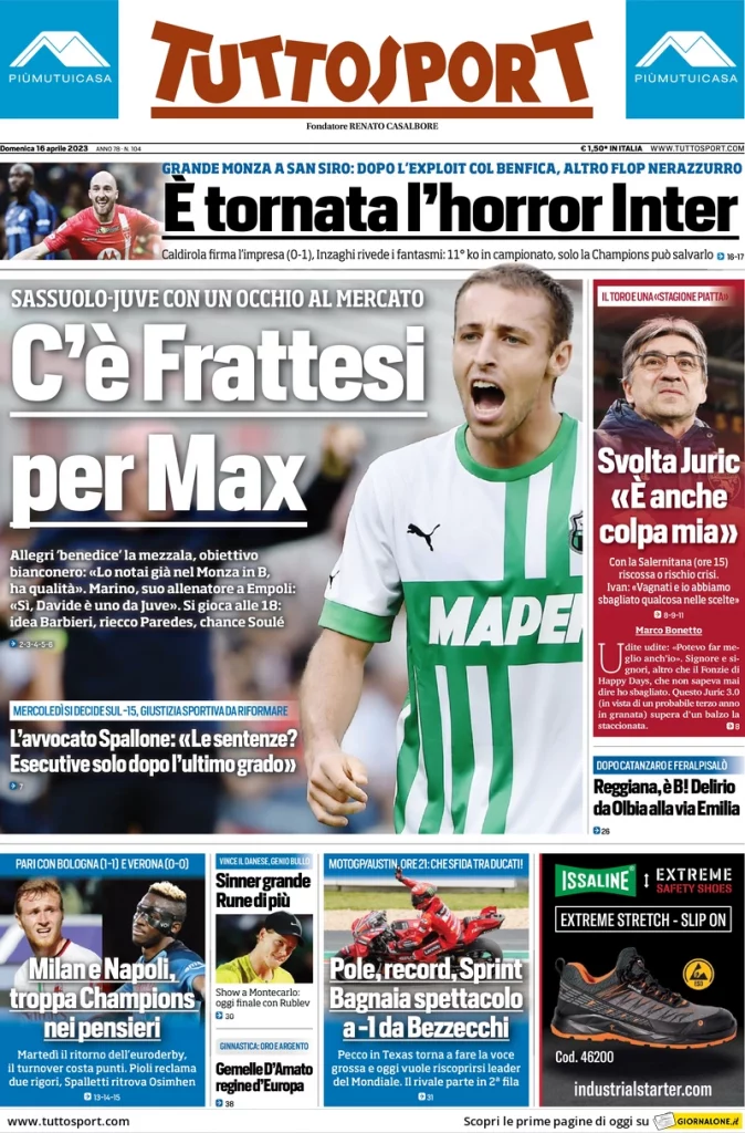 Le prime pagine dei principali quotidiani sportivi nazionali in edicola questa mattina