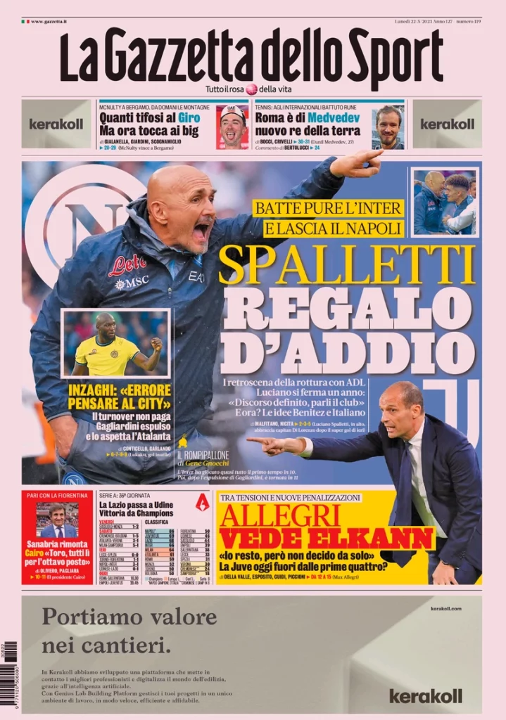 Le prime pagine dei principali quotidiani sportivi nazionali questo lunedƬ mattina in edicola