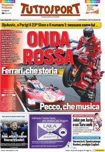 Le prime pagine dei principali quotidiani sportivi nazionali questa mattina in edicola