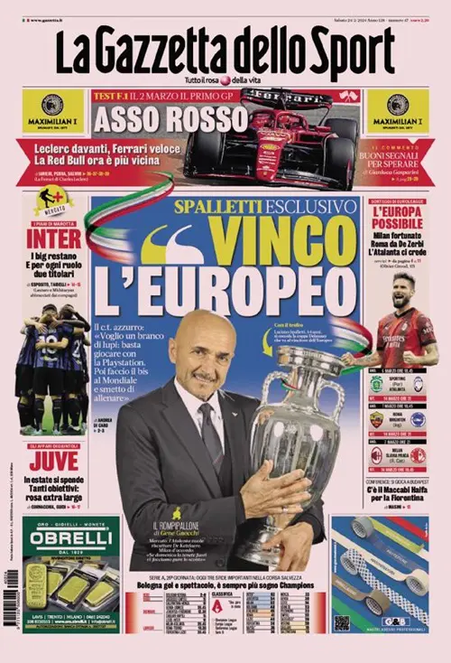 Serie A, Europa e Nazionale si prendono le copertine odierne dei maggiori quotidiani sportivi italiani.
