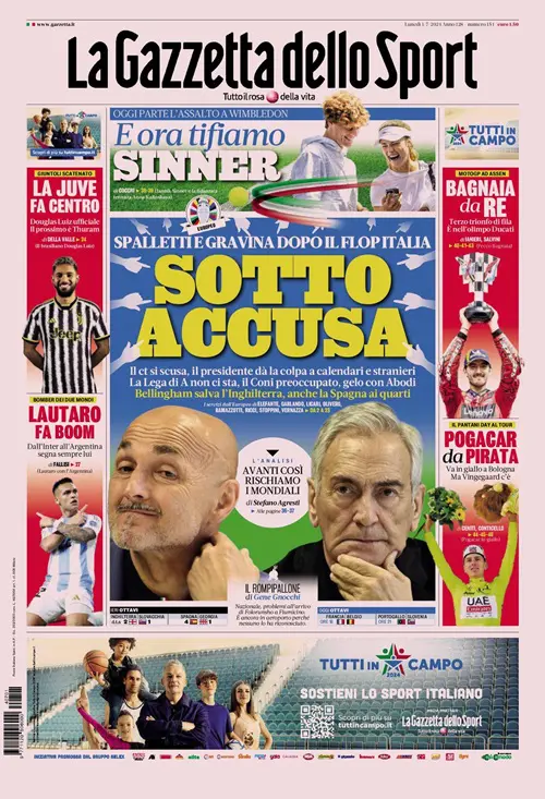 La Nazionale italiana sotto accusa e il calciomercato sono gli argomenti principali delle copertine odierne dei maggiori quotidiani sportivi nostrani.