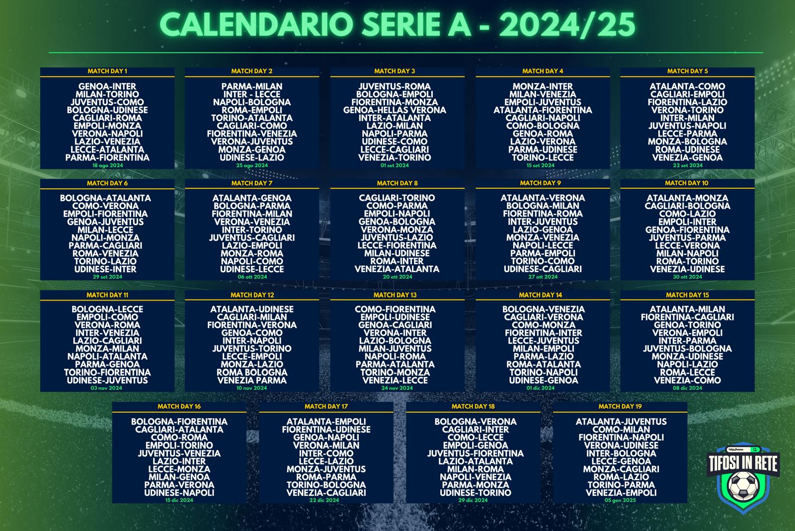Serie A, il calendario completo dei Tifosi in Rete!
