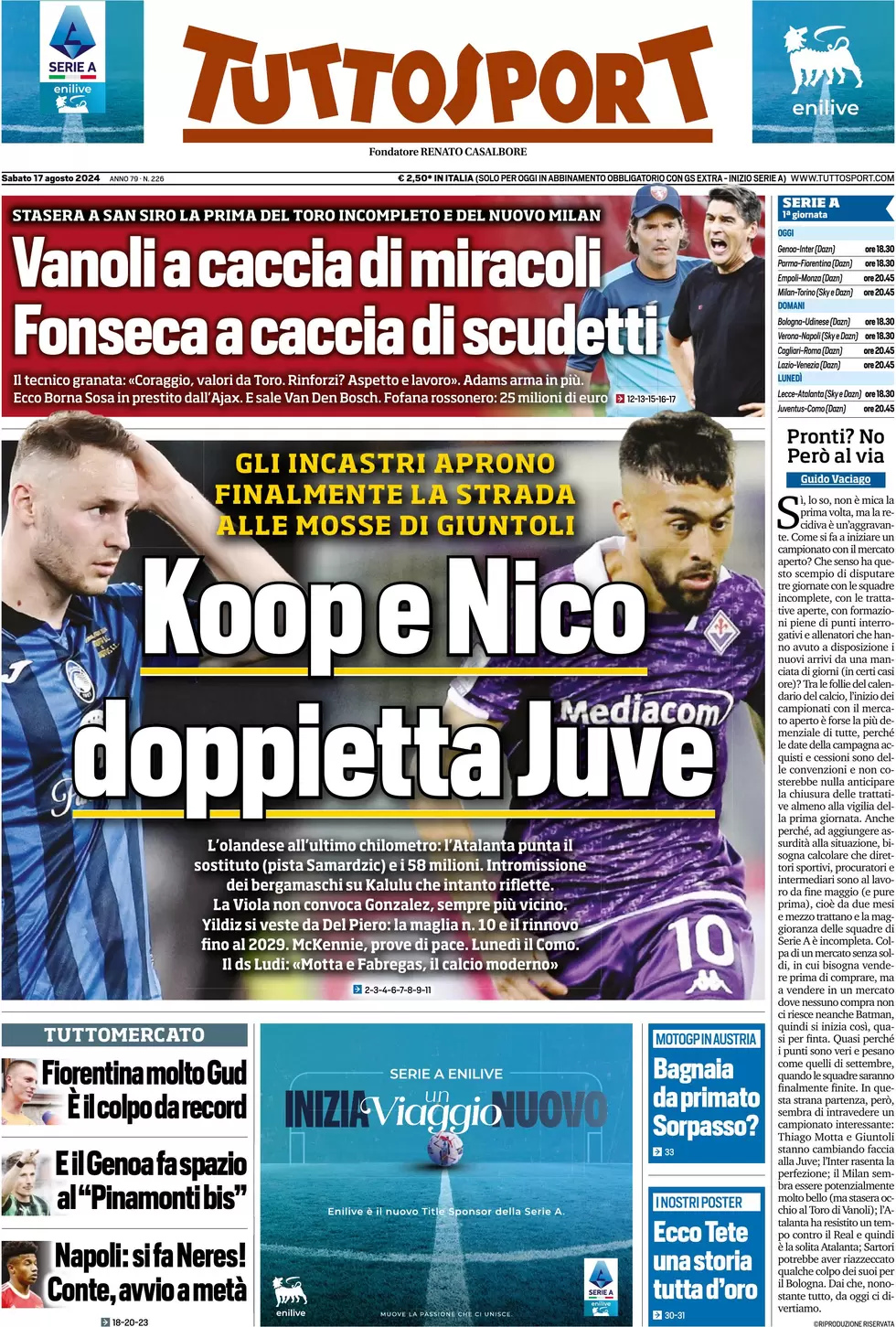 Buon sabato bianconeri! Partiamo dalla rassegna stampa di oggi