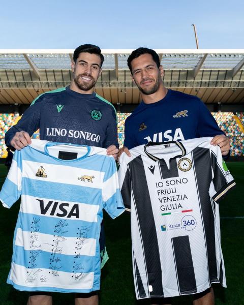 Lucca e Payero si sono scambiati le maglie con i due omologhi delle nazionali di rugby che si affronteranno quest'oggi...